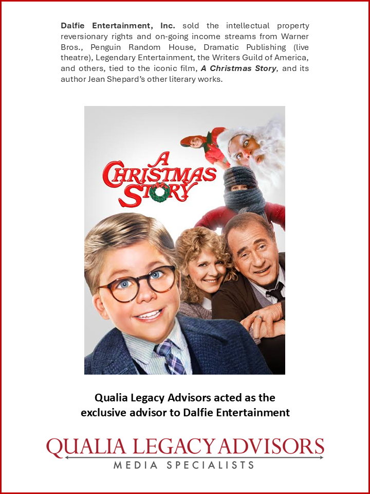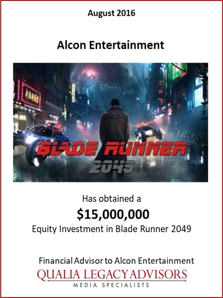 Founded in 2012, Qualia Legacy Advisors is a boutique advisory firm with a singular focus on entertainment and media. QLA provides investment banking services, corporate advisory services, restructuring advice, and operational turnaround services, to companies and investors in film, television, music, digital media, live events, publishing, market research, data analytics, and businesses that service the entertainment industry.